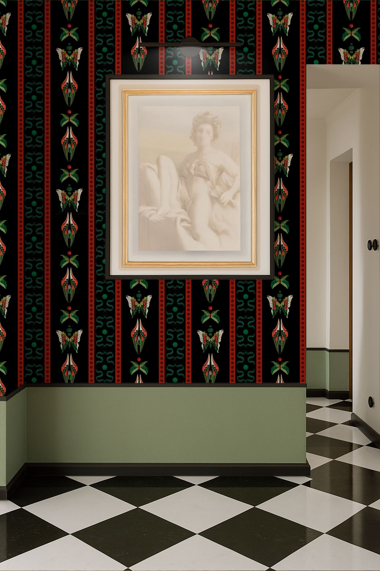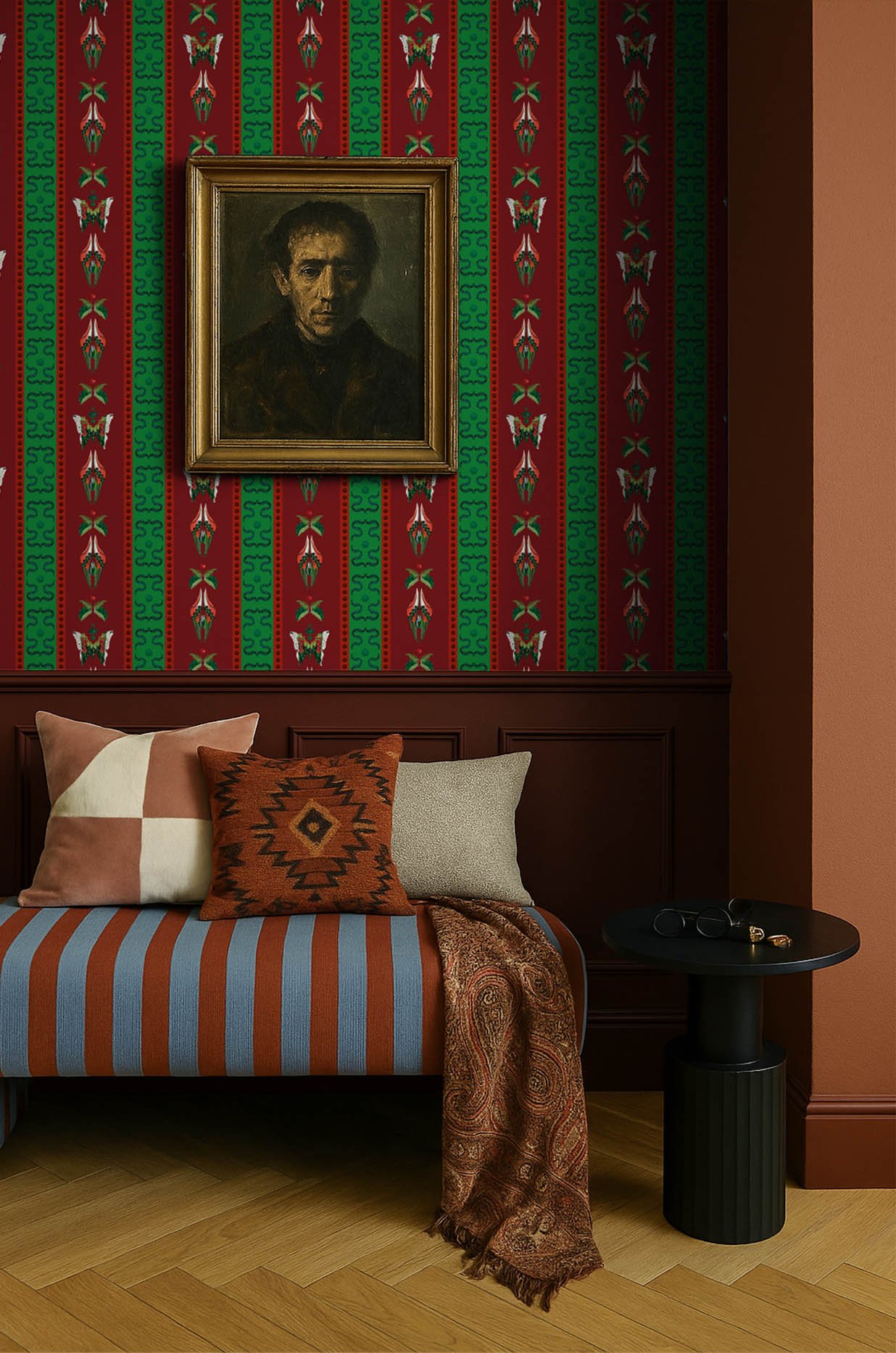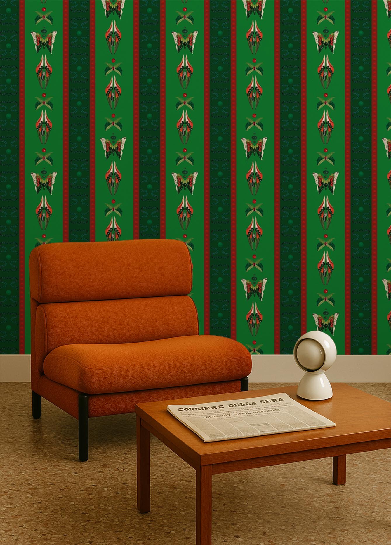 Per MaVoix, Fanny crea carte da parati che sono mondi da esplorare, pieni di dettagli da scoprire, tra riferimenti all’ornamento classico e libertà espressiva assolutamente contemporanea.