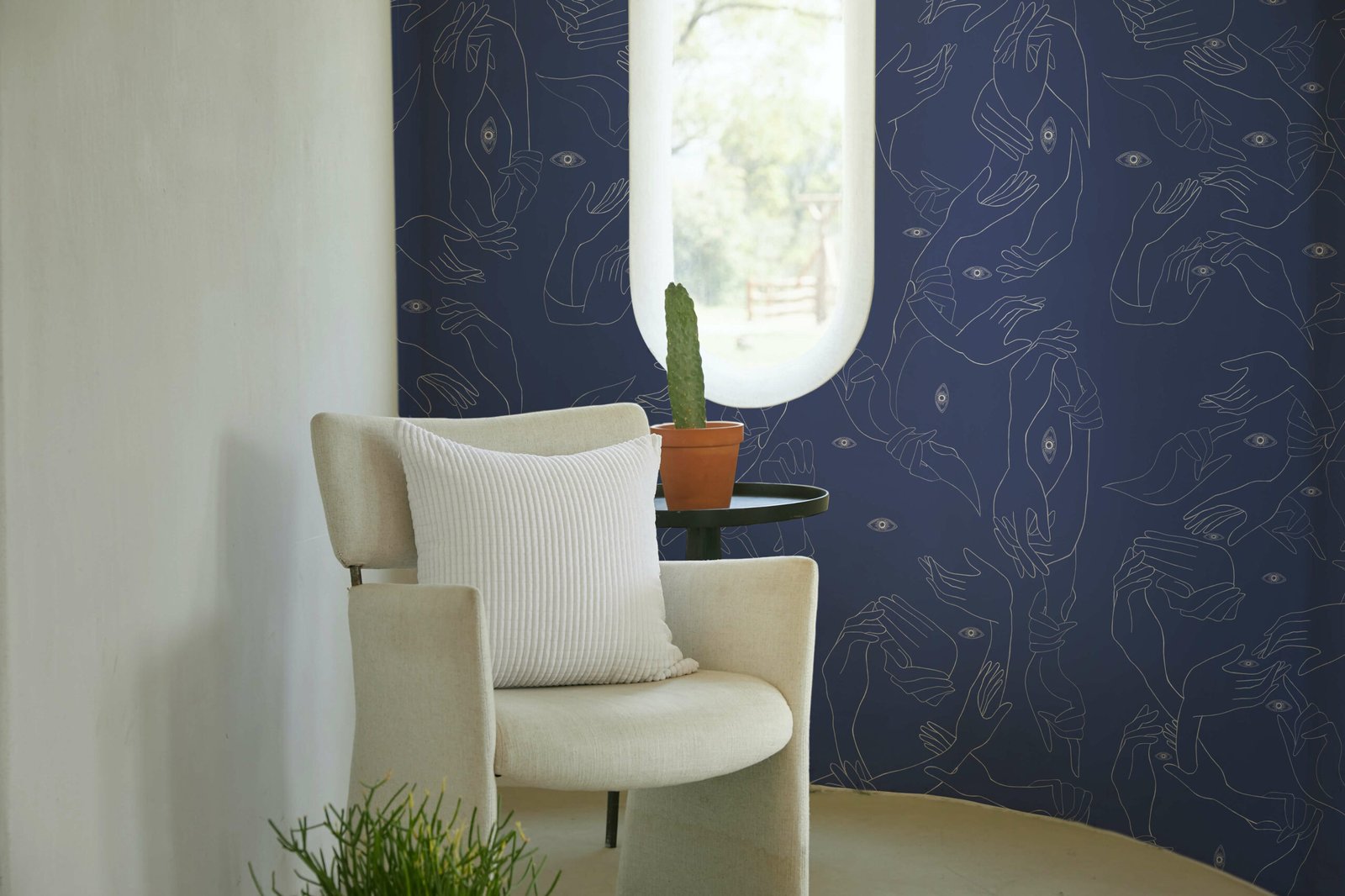Perfect for residential spaces, meditation studios, and places of listening or introspection, Uno, Nessuno Azzurro Serenità is a wallpaper that doesn’t tell everything — it merely suggests.