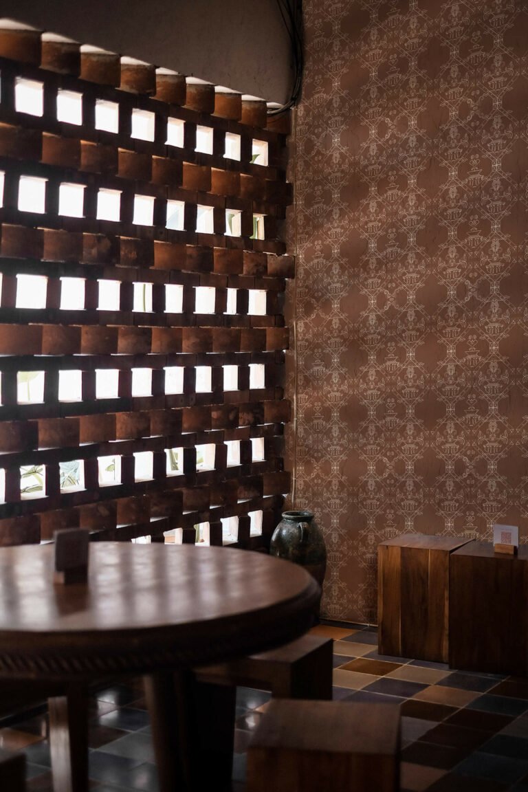 Nella variante Noce Moscata, lo sfondo si colora di un marrone speziato e vibrante, con toni caldi e vellutati che richiamano le superfici della terra cotta e delle spezie orientali.