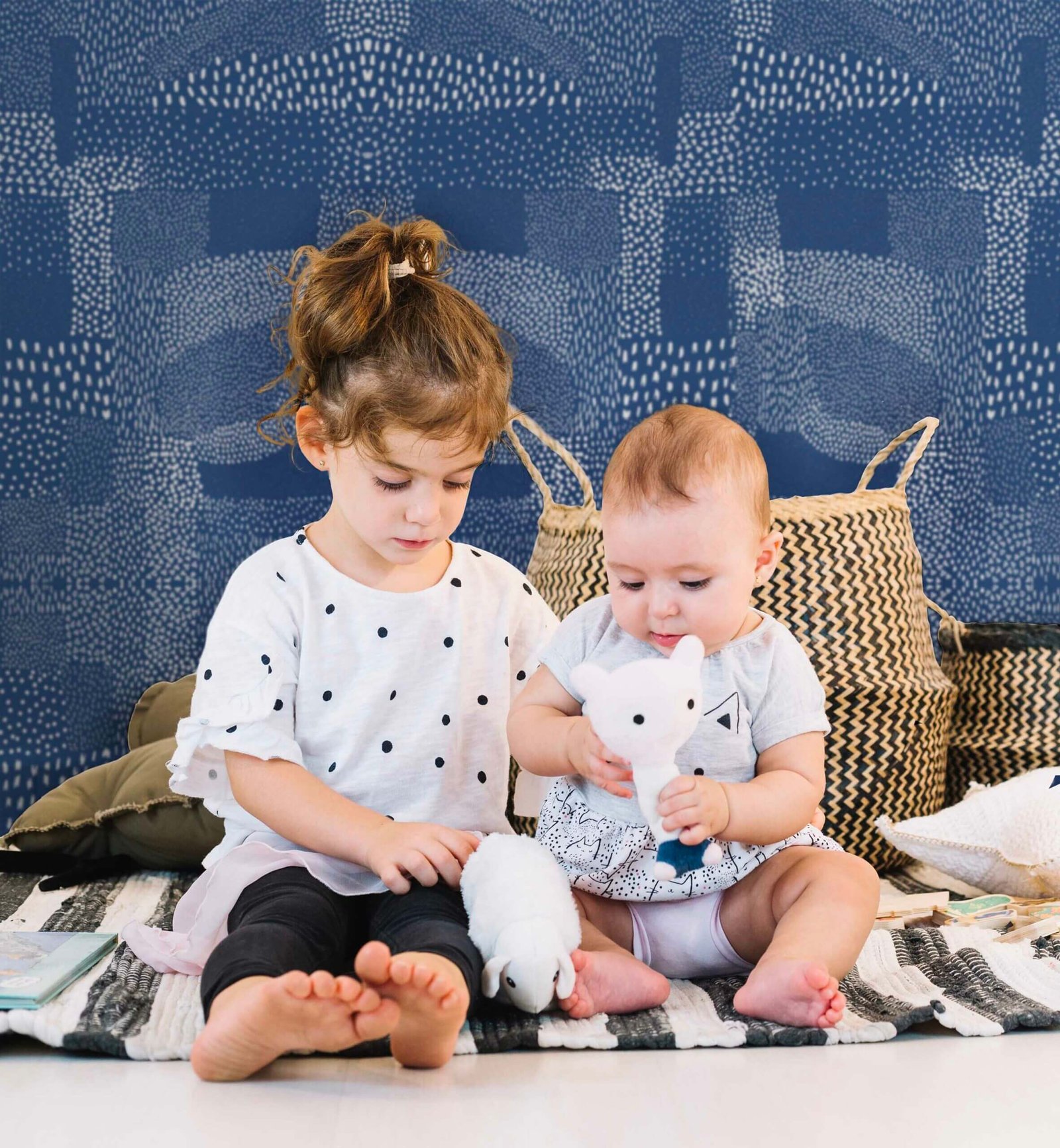 Macchiette Blu Classico è una carta da parati che racconta l'astrattismo come gesto libero, come esperienza visiva coinvolgente e modulare. Parte da un’idea semplice eppure potentissima: disseminare lo spazio con una costellazione di segni bianchi, irregolari, dinamici, che si aggregano, si distendono, si dissolvono e si ricompongono in una coreografia grafica mai uguale a sé stessa.