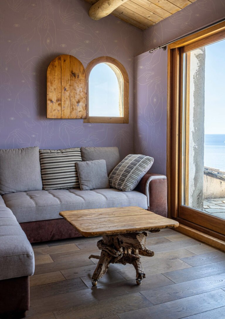L’occhio, elemento ricorrente nel vocabolario MaVoix, rimane presente, ma delicato. Quasi un’impronta. Il tratto sembra inciso nella superficie, più che stampato, come se la parete lo avesse sempre contenuto, come memoria visiva.